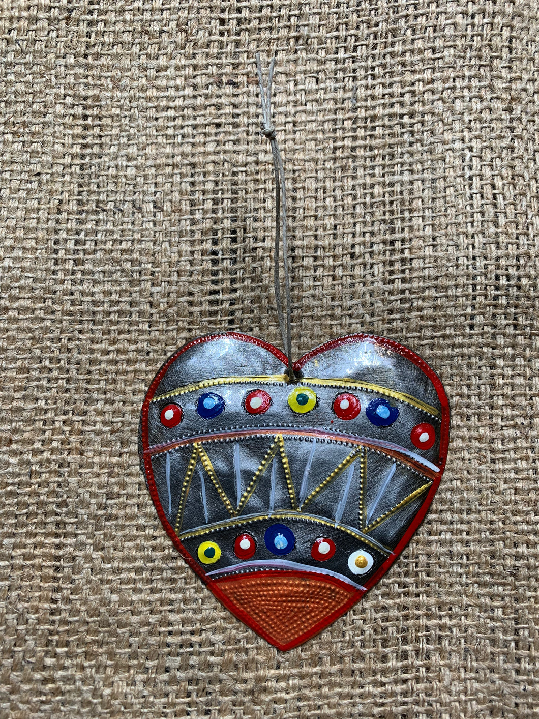 Hand made Haitian metal art. Using a recycled 55-gallon oil drums, Haitian artists cut and flatten the oil drum. Then with chalk, the design is drawn onto the metal sheet. Using a hammer, chisel and various primitive tools, the shape is cut and the various decorative patterns are pounded into the metal, creating a unique piece of amazing art. The finished design is signed by the artist and coated with a protective finish.